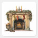 Stickers avec une illustration chaleureuse et cosy avec une cheminée à l'ancienne. Embrassage suspendu avec soin. Garland suspendu au-dessus du manteau. Un feu chaud rugissant dans le foyer.