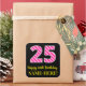 Ce joyeux autocollant carré sur le thème de l'anniversaire comporte un grand numéro "25" avec un motif rose foncé et rose clair rayures, avec le message "Joyeux 25e anniversaire", et un nom personnalisé. L'arrière - plan est noir de couleur. Des autocollants joyeux, amusants et personnalisés comme celui-ci peuvent être donnés comme cadeau d’anniversaire, utilisés lors de l’emballage de cadeaux, ou peut-être utilisés comme décoration de fête d’anniversaire pour célébrer le 25e anniversaire de quelqu’un. [~Z0000578]