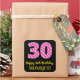 Ce joyeux autocollant carré à thème d'anniversaire présente un grand nombre de "30", avec un motif rose foncé et rayures rose clair. Il comporte également le message "Joyeux 30e anniversaire", et un nom personnalisable. L'arrière - plan est noir de couleur. Des autocollants amusants, joyeux et personnalisés comme celui-ci peuvent être donnés comme cadeau d’anniversaire, utilisés lors de l’emballage de cadeaux ou de cadeaux, ou peut-être utilisés comme décoration de fête d’anniversaire pour célébrer le 30e anniversaire de quelqu’un. [~Z0000578]
