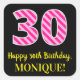 Sticker Carré Fun Pink Stripes "30" : Joyeux 30e anniversaire +