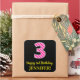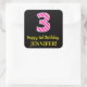 Ce joyeux autocollant carré à thème d'anniversaire présente un grand numéro "3", avec un motif rose foncé et rayures rose clair. Il comporte également le message "Joyeux 3e anniversaire", et un nom personnalisé. L'arrière - plan est noir de couleur. Des autocollants amusants, gais et personnalisés comme celui-ci peuvent être donnés comme cadeau d’anniversaire, utilisés lors de l’emballage de cadeaux, ou peut-être utilisés comme décoration de fête d’anniversaire pour célébrer le troisième anniversaire de quelqu’un. [~Z0000578]