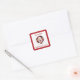 Mignons autocollants de Noël avec le Père Noël drôle qui traverse. Bordures rouges enneigées. Personnalisez facilement le texte. - Kate Eden Art.