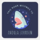 Sticker Carré Funny Shark & Stars Navy Blue Nautical Bookplate