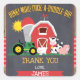 Boys Barnyard Chalkboard Sticker Carré Anniversaire Ce sticker de fête d'anniversaire de barnyard ou de ferme de garçon comporte une grange rouge, tracteur, cochon, agneau et une vache. Le design se compose d'un cadre de style tableau noir et d'un arrière - plan de plaid et d'image en bois.