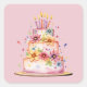 Sticker Carré Gâteau d'anniversaire rose moderne