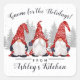 Ce joli gnome de vacances pour les fêtes Les autocollants de Noël présentent trois adorables gnomes vêtus de tenues rouge et blanc brun allée dans la neige avec des pins derrière eux. Personnalisez avec votre nom vos bonbons de vacances et traitez vos sacs et cadeaux. Joyeuses fêtes !