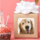 Ces autocollants carrés sont munis d'une photo d'un chien de repérage doré souriant, en portrait.