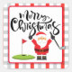 Sticker Carré Golf Joyeux Noël avec Père Noël jouant au golf