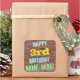 Ce design amusant d'autocollant sur le thème de l'anniversaire comporte un message comme "HAPPY 3rd BANTHDAY, NAME-HERE!", où le nom peut être personnalisé. L'arrière - plan est représenté par un mur en brique composé de briques de couleur rougeâtre. Le texte du message personnalisable comporte des couleurs comme le bleu, le jaune et le vert, et il a un aspect inspiré de celui des graffitis peints. Des autocollants comme ceux-ci pourraient peut-être être donnés comme cadeau d'anniversaire, ou peut-être être utilisés comme décorations à une fête d'anniversaire pour quelqu'un qui célèbre son troisième anniversaire. [~Z0000273]