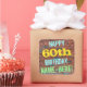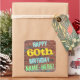 Ce design amusant d'autocollant sur le thème de l'anniversaire comporte un message comme "HAPPY 60th BIRTHDAY, NAME-HERE !", où le nom peut être personnalisé. L'arrière - plan est représenté par un mur en brique composé de briques de couleur rougeâtre. Le texte du message personnalisable comporte des couleurs comme le bleu, le jaune et le vert, et il a un aspect inspiré de celui des graffitis peints. Des autocollants comme ceux-ci pourraient peut-être être donnés comme cadeau d'anniversaire, ou peut-être être utilisés comme décorations à une fête d'anniversaire pour quelqu'un qui célèbre son soixantième anniversaire. [~Z0000273]