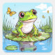 Sticker Carré Grenouille mignonne sur un tapis de Lily