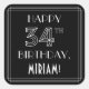 Ce design d'autocollant de luxe inspiré de l'art déco des années 1920/1930, carré d'anniversaire, a le message "HAPPY 34TH BIRTHDAY," ainsi qu'un nom de destinataire personnalisé. Le numéro "34TH" a un style géométrique soigné, et il y a aussi une bordure multi-lignes autour du message de voeux d'anniversaire. Des autocollants sur le thème de l’anniversaire comme ceux-ci peuvent être utilisés ou donnés à une fête d’anniversaire célébrant le trente-quatrième anniversaire de quelqu’un, ou peut-être utilisés pour préparer des invitations, des cadeaux ou des cadeaux pour un tel événement. [~Z0000646]