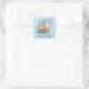 Sticker Carré Happy Cat Book Stack Custom Name Bookplate Blue