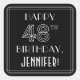 Cet élégant autocollant carré inspiré de style art déco des années 1920-1930, est doté du message "HAPPY 48TH BIRTHDAY" et d'un nom de destinataire personnalisé. Le numéro "48TH" a un look géométrique soigné, et il y a aussi une bordure multi-lignes autour du message de voeux d'anniversaire. Des autocollants comme ceux-ci peuvent être distribués ou utilisés lors d'une fête d'anniversaire organisée pour quelqu'un qui célèbre son quarante-huitième anniversaire, ou peut-être utilisés pour préparer des invitations ou des cadeaux pour un tel événement. [~Z0000646]