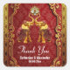 Deux magnifiques éléphants dorés en 3D, ornés d'éléments de henné, se font face et ont leurs troncs élevés autour d'une jolie fleur de lotus blanc doré. Elles sont dressées contre un arrière - plan de brocart rouge bordé de tourbillons fleuris et d'une bordure fleurie dorée. Sous l'éléphant sont des modèles pour votre libellé personnalisé. Elles sont idéales pour des événements hindi, hindous ou indiens de luxe, haut de gamme, sophistiqués et élégants, qu'il s'agisse d'un mariage, d'une douche nuptiale, d'un événement d'entreprise ou d'un anniversaire. Il suffit de peler et coller pour ajouter une touche de classe à des faveurs, des accessoires d'expédition ou des cadeaux.