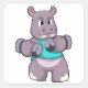 Sticker Carré Hippo à Bodybuilding avec Dumbbells