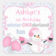 © 2013 Socialite Designs. Notre autocollant d'anniversaire ONEderland d'hiver a de adorables petites mitaines et une femme des neiges tenant des cupcakes. L'arrière - plan possède des flocons de neige roses et argentés avec un motif à pois blanc et bleu. Customisez cet autocollant fantaisiste de fête d'anniversaire d'hiver de l'enfant en remplaçant notre texte modèle. Tous les éléments de conception peuvent être déplacés, redimensionnés ou supprimés pour convenir à votre événement.
