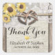 Mariage rustique de style champêtre Favor Merci Sticker Modèles - Vieux fer à cheval Couple avec corde Bow Knot et tournesol, dentelle blanche, Burlap Cloth sur Vieux Arrière - plan en bois de grange. Un design parfait pour votre grand jour. Tous les styles de texte, couleurs, tailles peuvent être modifiés selon vos besoins !