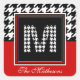 Sticker Carré Houndstooth et monogramme classiques | Blanc noir