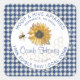 Une frontière à rayures bleues et vintages à l'ancienne donne à ce étiquette de miel peigne un look de maison pour vos ruches de ferme ou de jardin. Idéal pour les marchés fermiers ou les ventes locales où les clients recherchent du miel cru, local, en bouteille à la main. Tournesol, nid d'abeille et conception vintage.