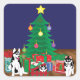 Sticker Carré Huskies Jouer sous la carte d'arbre de Noël