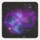 Il y a un symbole d'infinité violet semi-transparent contre une image d'espace violet. Galaxy Cluster MACS J0717 grâce au programme NASA et Hubble.