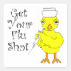 Obtenez votre vaccin contre la grippe en texte bouclé avec une infirmière chiche jaune mignonne tenant une aiguille hypodermique est un modèle de cadeau amusant avec un message de santé.