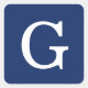 Sticker Carré Initial Letter Monogram Blue White Plain Simple