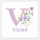 Sticker Carré Initiale Plus Nom Violet & Fleurs Design