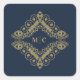 Sticker Carré Initials Navy Blue Gold Sophisticated Swirly