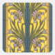 Sticker Carré Iris Fleur Art Nouveau Vitrail Bleu Or