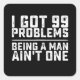 Sticker Carré J'ai 99 problèmes d'être un homme n'est pas un