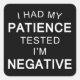 Sticker Carré J'ai fait tester ma patience Je suis Négative Drôl
