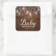 Autocollant rustique Baby shower carré avec lumières dans des bocaux en maçon et cordes de lumières avec le mot "Baby shower" contre un arrière - plan motif en bois brun. C'est l'autocollant parfait pour un baby shower rustique ou champêtre. Consultez l'invitation correspondante et les articles comme les autocollants et les timbres ici https://www.zazzle.com/collections/rustic_wood_mason_jars_and_lights-119202204970019494?rf=238364477188679314 Personnalisez-le en remplaçant le texte de l'espace réservé pour ajouter vos informations. Pour plus d'options, cliquez sur le bouton "Personnaliser". *Veuillez noter que le filigrane Zazzle qui apparaît dans l'aperçu du zoom n'apparaîtra PAS sur le produit imprimé final. © Bois de rose et agrumes