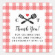 La touche finale parfaite pour une fête de fiançailles I Do BQ ou un dîner de répétition, cet autocollant a le monogramme du couple parmi les outils de grillades sur un joyeux motif de couverture de pique-nique rouge.