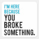 Sticker Carré Je suis ici parce que tu as cassé quelque chose