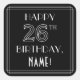 Ce modèle de sticker carré à thème d'anniversaire de style Art déco de luxe Roaring Twenties a le message "HAPPY 26TH BIRTHDAY," et un nom de destinataire personnalisé. Le numéro "26TH" a un aspect géométrique soigné, et il y a aussi une bordure multi-lignes autour du message de voeux d'anniversaire. Des autocollants sur le thème de l’anniversaire comme ceux-ci peuvent être donnés ou utilisés à une fête célébrant le vingt-sixième anniversaire de quelqu’un, ou peut-être utilisés pour préparer des invitations ou des cadeaux pour un tel événement. [~Z0000646]