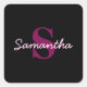 Sticker Carré Joli script de monogramme rose et noir personnalis