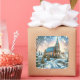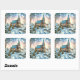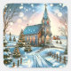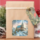 stickers de Noël avec une belle église aquarelle, des arbres de Noël, des jardins enneigés et des étincelles.
