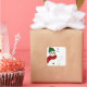 Un bonhomme de neige joyeux, portant un casquette et une écharpe, saluant au revoir.