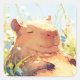 Ce charmant autocollant de capybara présente un capybara paisible, allongé dans une prairie ensoleillée, entouré de fleurs sauvages délicats. Avec ses yeux fermés et son sourire doux, le capybara rayonne de pure relaxation et de bonheur. La lumière chaude qui filtre dans l'herbe et les fleurs renforce l'atmosphère rêveuse et tranquille. Le doux mélange de fleurs jaunes, bleues et blanches crée un cadre naturel et serein, parfait pour les amateurs de capybara, les amoureux de la nature et les amateurs d'images douillettes et stimulantes.