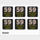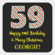 Ce sticker simple et amusant sur le thème de Noël et d'anniversaire Décembre 25e anniversaire de conception dispose d'un grand nombre de "59", avec un motif de rayures vert, blanc et rouge. Il comporte également le message "Joyeux 59e anniversaire & Joyeux Noël", et un nom personnalisable. L'arrière - plan est noir de couleur. Des autocollants comme celui-ci peuvent être utilisés pour préparer des cadeaux qui sont donnés à quelqu'un dont le cinquante-neuvième anniversaire tombe le 25 décembre (jour de Noël). [~Z0000409]
