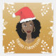 Sticker Carré Joyeux Noël, Femme noire, Père Noël rouge, Jaune