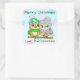 Sticker Carré Joyeux Noël mignonne Chouette Couple Noël