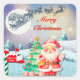 Sticker Carré Joyeux Noël Père Noël, Sleigh, Reindeer, Snowflake