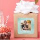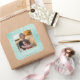 Ce Sticker de Noël moderne simple comporte des flocons de neige sur un arrière - plan d'hiver vert doux. Joyeux Noël est écrit dans une belle écriture manuscrite. Personnalisez ce Sticker de Noël avec votre photo et votre nom de famille.