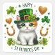 Sticker Carré Joyeux St. Patrick's Day Kitten