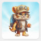Sticker Carré Joyeux Tiger Cub avec sac à dos et café