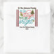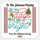 This vibrant square sticker features a joyful holiday greeting with ornate lettering. Enriched with festive elements like a Christmas tree and holly, it conveys warm wishes for bright and merry days during the festive season of Christmas.