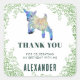 Aquarelle colorée mignonne saut bébé chèvre merci pour les sacs avec le feuillage et la verdure, idéal pour une fête anniversaire de enfant spécialement les célébrations thématiques de la ferme. Les mots "Merci pour fêter mon anniversaire avec moi" avec le nom d'un enfant sur mesure. Une typographie moderne et colorée, facile à personnaliser avec le modèle. OEuvre originale de l'artiste Catherine Sweetman